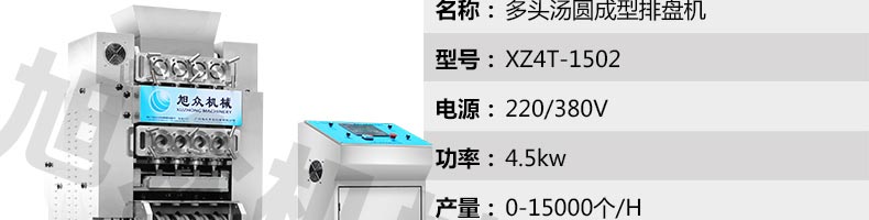 旭眾牌XZ4T-1501型多功能湯圓成型排盤機是一款只要將面團放入進料口,開機便可自動搓圓、成型的設備,制品不易變形,工作效率高,相當于15-20個工人同時手工制作湯圓,并可自動排盤,真正的低投入、高收效、省錢省工。